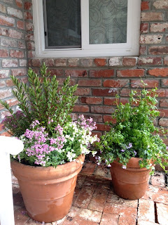 If you have a large planter, like the one in this picture then you might want to add multiple plants in one planter for a dramatic effect. The key to the drama is to add one plant that is leafy and bushy, one plant that is trailing, and then one plant that has colorful flowers. If you have a shady spot and can't add color, pick plants that are different shades of green and that can look really effective too.