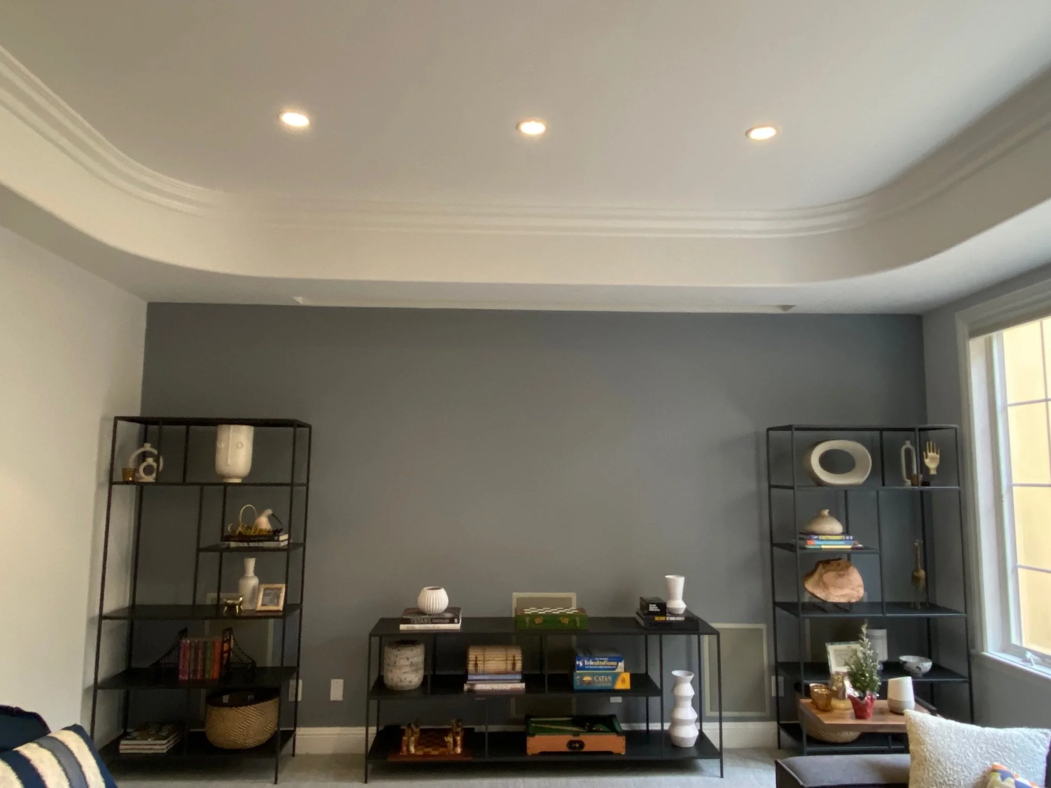 Once we agreed on a vision for the room, we picked the paint color - Benjamin Moore Silver Streak and selected a new carpet for installation. Even just with new paint and carpet, the space came to life!